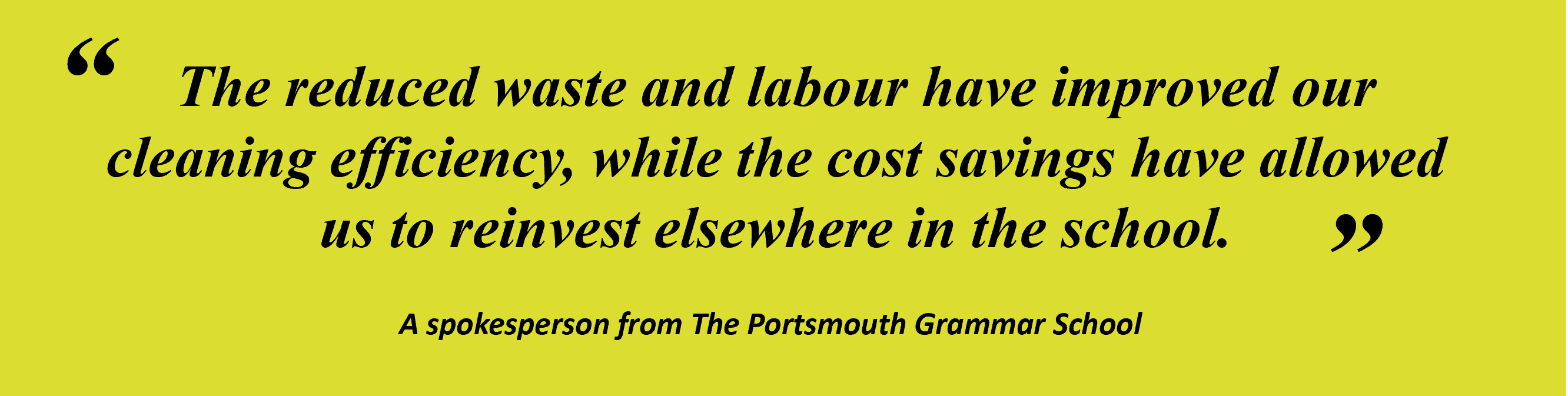 The reduced waste and labour have really helped with the efficiency of our cleaning operations, and the significant cost savings have enabled us to allocate funds to other functions throughout the school.